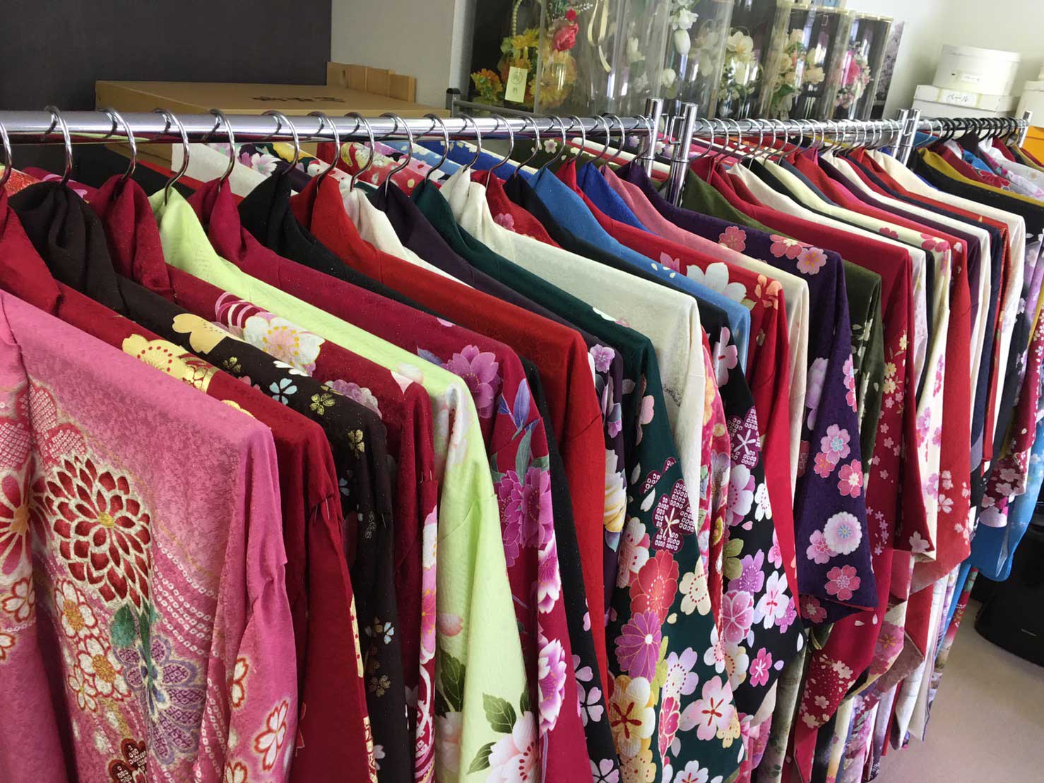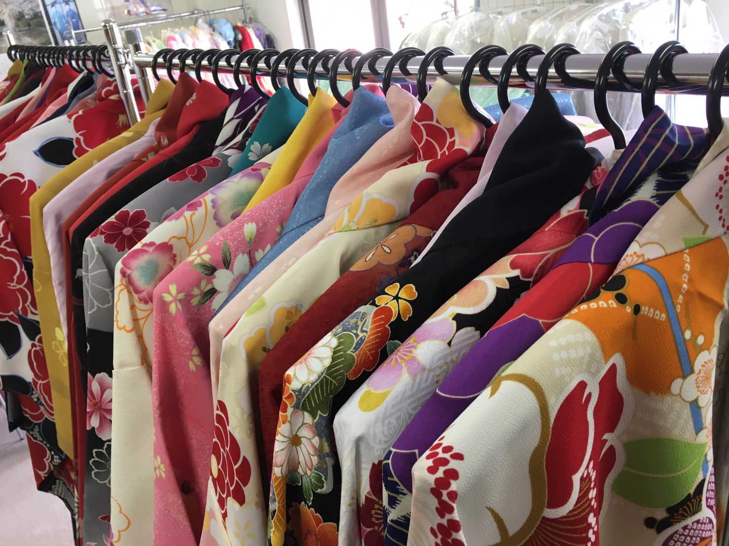 参考:一生に一度の成人式は華やかな装いで。古典柄レトロ柄シンプル柄など色々取り揃え、現代的でデザイン性の高い正絹高品質の振袖を特設コーナーで展示しております。美容着付けは当店及び美容室で行い前撮り後撮りは写真スタジオで行い各専門店と連携しておりトータルサポート致します。